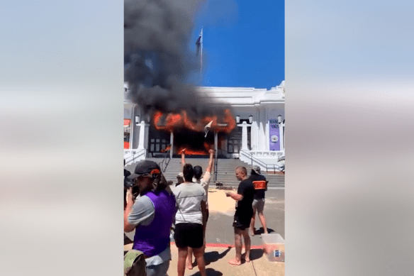 Video below shows fire coming out of the main entrance of Old Parliament House: