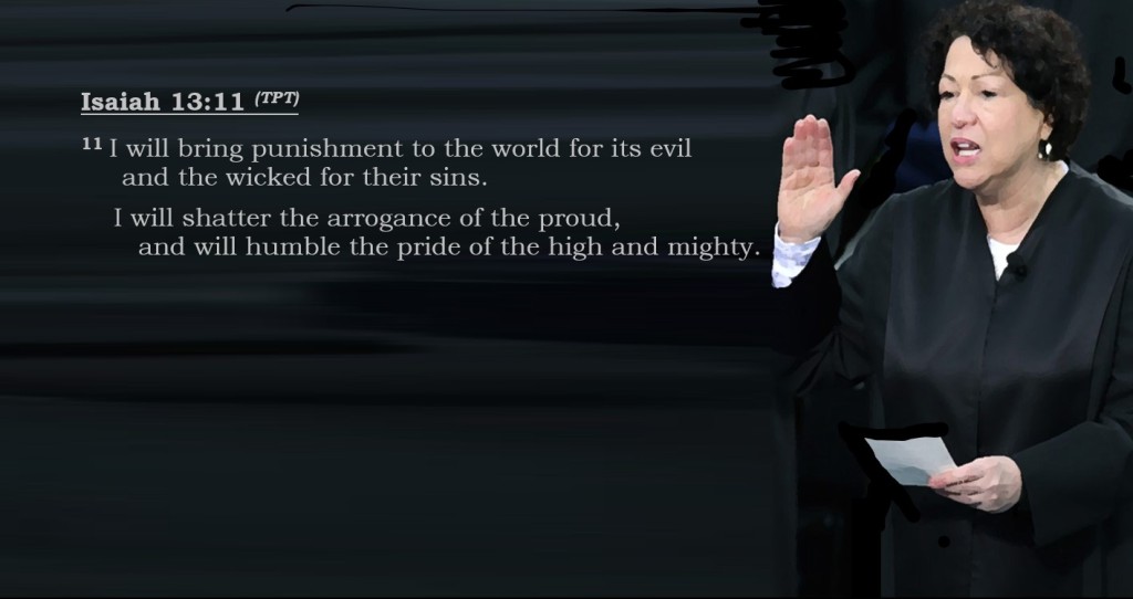 We now know, without doubt, where the allegiance of one justice is; after spuing wild lies and false information, it is clear Sotomayor is aligned with the left and those seeking to steal, kill, and destroy.