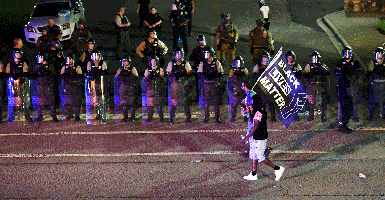 Black Lives Matter supports the same anti-freedom agenda in America as it does in Cuba. Pictured: Police officers stand guard during a June 24 protest after the arrest of Ricky and Travis Price in Rock Hill, South Carolina. (Photo: Peter Zay/Anadolu Agency/Getty Images)