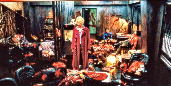 Ichi The Killer (2001) This absolutely insane violent film have one theme throughout which is how it centers on the Japanese mafia – the “Yakuza” I submit here a still frame from one scene that gives a glimpse into this films bloodlust of debauchery full kickass mode! The film is so horrid it has been banned in many countries even though this Japanese director Takashi Miike says he was taking violence to a new level to make “bloody art out of it!” At a one-time midnight screening of this film madness at the Toronto International Film Festival, vomit bags where distributed to all attendees before they took their seats! Many used them!