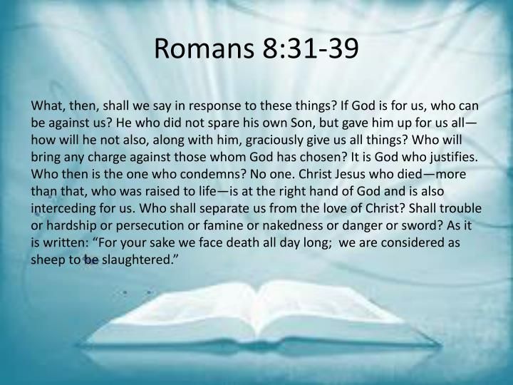 “30And those He predestined, He also called; those He called, He also justified; those He justified, He also glorified. 31What then shall we say in response to these things? If God is for us, who can be against us? 32He who did not spare His own Son but gave Him up for us all, how will He not also, along with Him, freely give us all things?” Romans 8:30-32