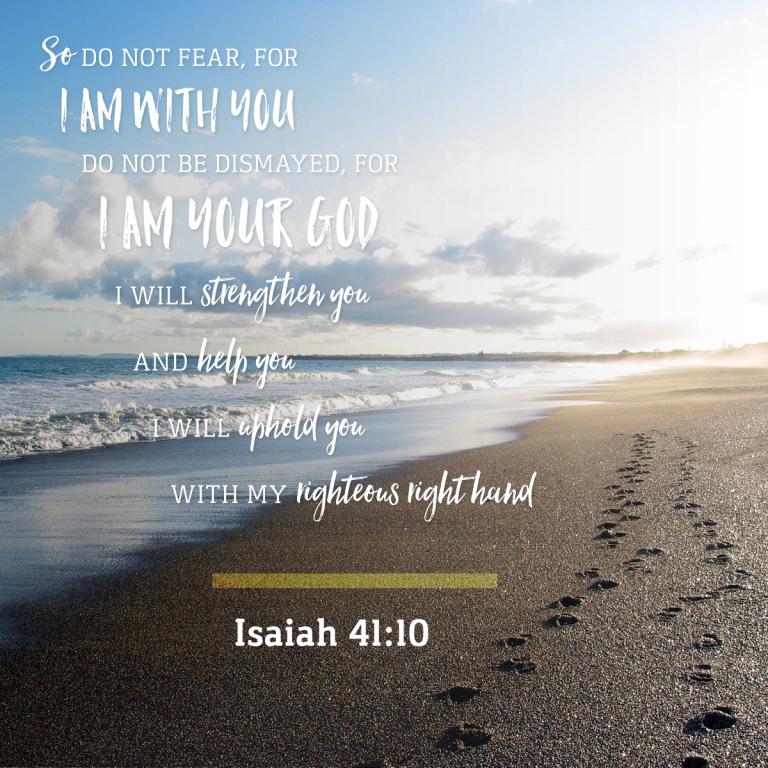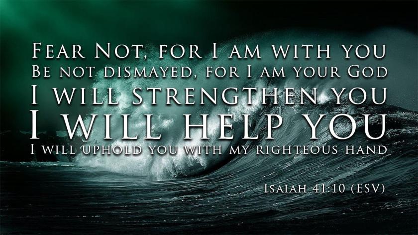 “Fear not, for I am with you; be not dismayed, for I am your God; I will strengthen you, I will help you, I will uphold you with my righteous right hand.” Isaiah 41:10